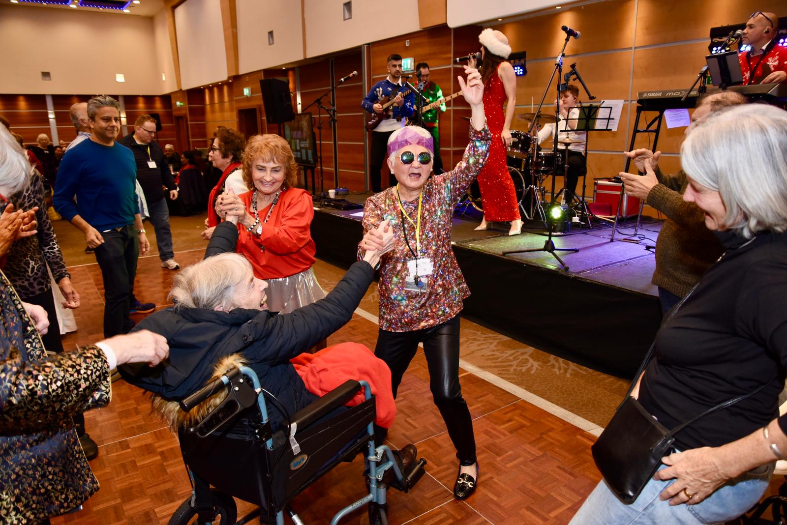 Our guests enjoyed a delicious Christmas lunch with all the trimmings. The room was full of joy and there was plenty of laughter, enthusiastic dancing to live music from Vivid Jazz, and a real sense of community spirit. Every attendee received a gift bag to take home, and free transport was arranged to ensure everyone could join us. The day was made possible by the dedication of more than 65 volunteers, who generously gave their time to support the event and prepare the goody bags, helping create a memorable Christmas for all who attended.